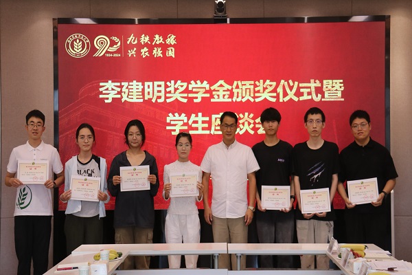 在颁奖仪式上,黄明学向各位老师和同学介绍了李建明奖学金的设立背景并宣读2023-2024学年李建明奖学金获奖学生名单,李建明向奖学金获得者颁发证书。